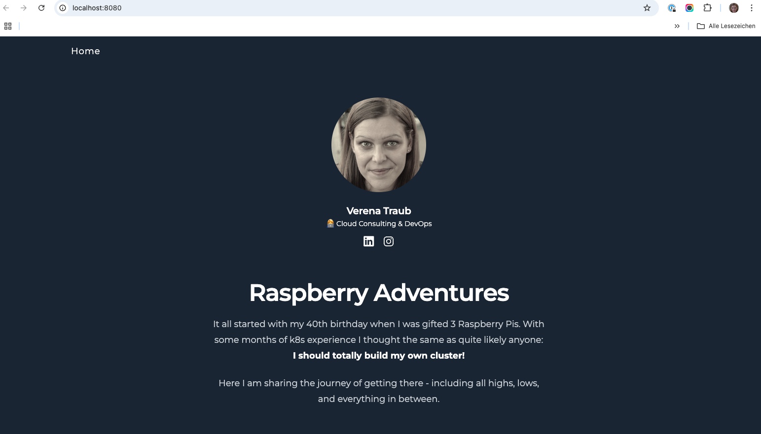 I now have a cluster - but it’s still running over WiFi, and that’s not the end goal. Before I take everything down and switch to a wired setup, I thought, it might be fun to not only deploy the typical nginx-demo or the “Hello World” app from b’nerd, but this blog page - built with Hugo and TailwindCSS ;)